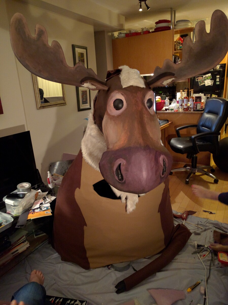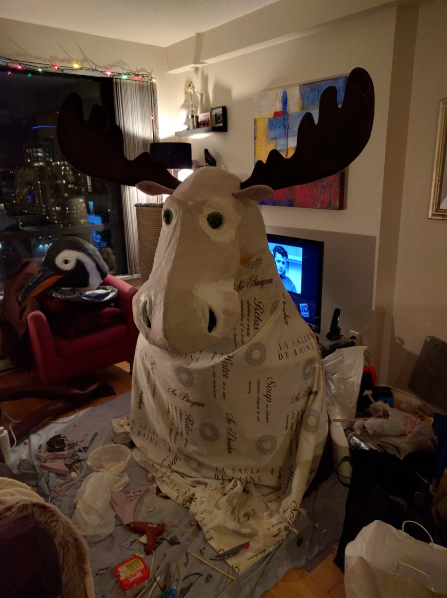 Who says moose don't like to party like the rest of us. We built "Moosie von Moose" using Pengy's body to save us a bit of time, so that was nice. Although I don't think body-less Penguin head was too thrilled. He just sort of stared at us while we worked. Bodies are temporary Pengy, everyone knows that.
